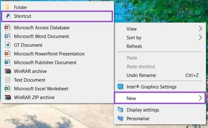 برای ایجاد شورتکات جدید میتوانید روی فضای خالی دستاپ راستکلیک کنید و گزینه Shortcut و سپس New را انتخاب کنید. اگر هدف شما ساخت شورتکات برای اجرا کردن دستوری نظیر دستور خاموش کردن یا ریستارت کردن کامپیوتر باشد نیز میتوانید از همین روش استفاده کنید.
